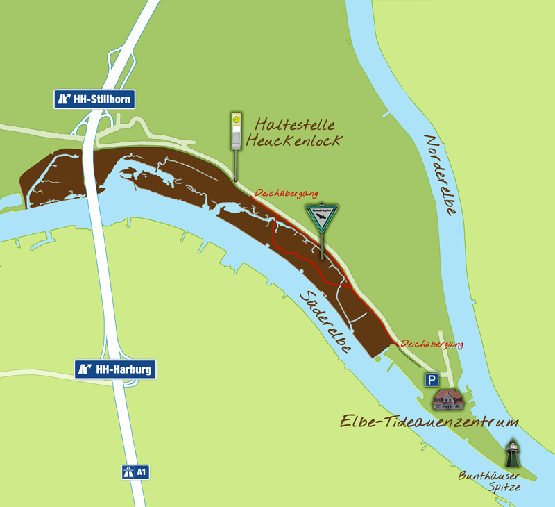 Aus Rücksicht vor Flora und Fauna darf der Weg nicht verlassen werden. Bitte beachten Sie: Bei Sturm und höher auflaufendem Hochwasser das Heuckenlock zu Ihrer eigenen Sicherheit nicht betreten!